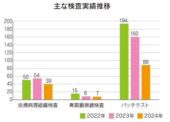 皮膚病理組織検査、真菌顕微鏡検査、パッチテスト、アレルゲン検査なども用い、